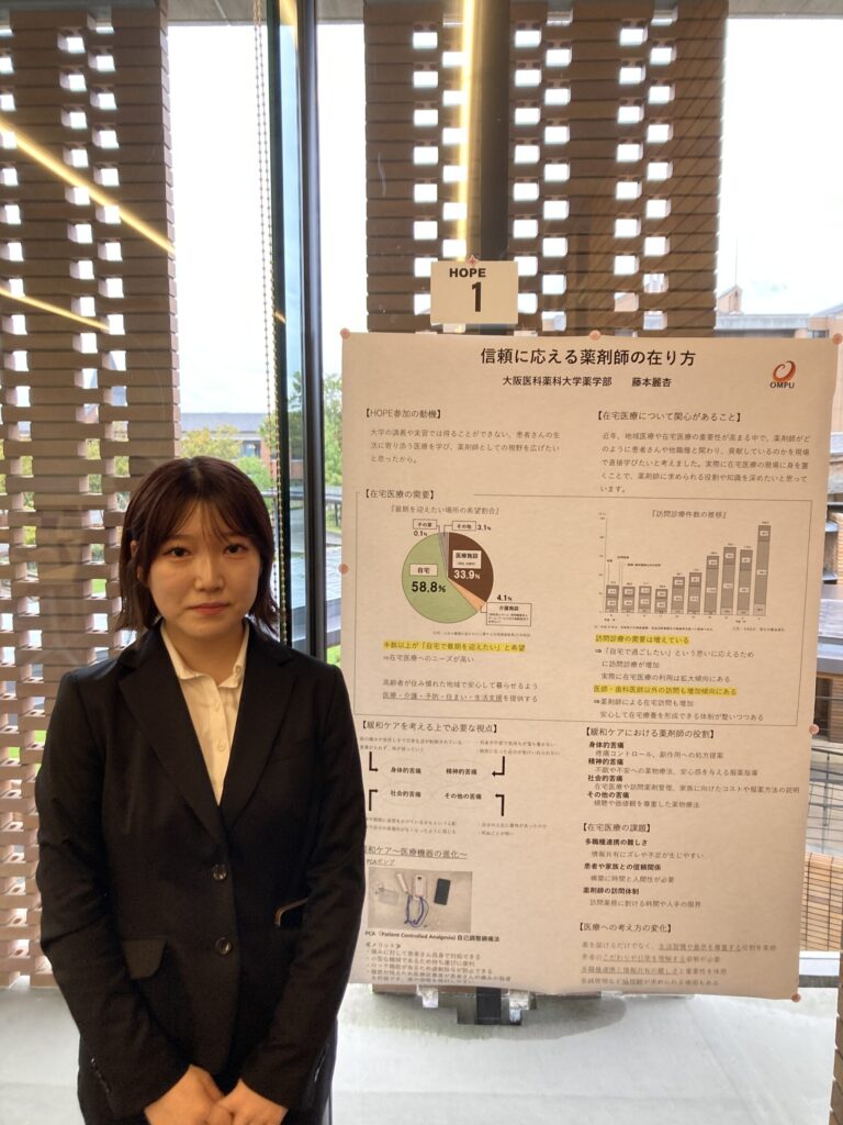 Reia Fujimoto (4th year) and Misaki Furutani (4th year) presented posters at the 75th Kansai Regional Meeting of the Pharmaceutical Society of Japan (October 4, Doshisha Women’s College of Liberal Arts).